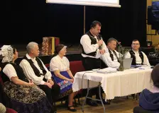 Tradičná zabíjačka v Išasegu9:25 » Ľudové noviny Slovenská samospráva v Išasegu v spolupráci s Tanečným súborom Csata, vďaka dotácii z programu Csoóri, usporiadala tradičnú februárovú zabíjačku. Cieľom podujatia bolo pestovanie miestnych slovenských a maďarských ľudových tradícií, zachovanie a odo… Slovenský fašiangový batôžkový ples v Bánhide9:25 » Ľudové noviny Dňa 6. februára sa v Bánhide konal Slovenský fašiangový batôžkový bál . Podujatie sa nieslo v znamení národnostnej kultúry, hudby a komunitnej súdržnosti. Dobrý večer vám Pán Boh daj!9:25 » Ľudové noviny V Slovenskom Komlóši sa v medzivojnovom období na fašiangy takto zdravili dievčatá, ktoré sa obliekli do pekných šiat, na hlave mali červené papierové „čákovi“ (špicaté čiapky) a na čižmách zvonce, a tak chodili po domoch, spievali a tancovali. Čerpajme silu z víťazstva Ježiša Krista9:25 » Ľudové noviny Predposledná februárová nedeľa bola pre členov Slovenského evanjelického cirkevného zboru v Budapešti mimoriadna. Do kaplnky v Lutherovom dvore si prišli vypočuť Božie slovo okrem pravidelných účastníkov slovenských bohoslužieb mladí ľudia z Vojvodi… Fašiangový karneval v slovenskej základnej škole v Slovenskom Komlóši21.února » Ľudové noviny V piatok, 13. februára, sme mali zaujímavý deň. Zavŕšili sme fašiangové obdobie karnevalom. Maskami a veselou hudbou sme vyháňali zimu. A slniečko výdatne pomáhalo. Deň bol jasný a takmer teplý. Veselšie bolo na duši a veselo bolo v škole. Nečudo, v… Národnostný športový víkend v Békešskej Čabe21.února » Ľudové noviny Úrad predsedu vlády Maďarska začiatkom februára už po piatykrát usporiadal Národnostný š portový víkend pre Chorvátov, Nemcov, Rumunov a Slovákov – študentov národnostných gymnázií v Maďarsku. Báseň nie je iba rým a rytmus21.února » Ľudové noviny Slovenská samospráva mesta Šalgótarján , Slovenská samospráva Novohradskej župy a Zväz Slovákov v Maďarsku (ZSM) usporiadali 16. februára v Knižnici Bálinta Balassiho v Šalgótarjáne literárne popoludnie, stretnutie s Evou Fábiánovou a Imrichom Fuhlo… Anketa Ľudových novín21.února » Ľudové noviny Vryté v srdci a pamäti Pamätáte si ešte frázy, vety, múdrosti, ktoré vám ako dieťaťu zneli v ušiach? Tie, čo prišli nenápadne – pri večeri, na dvore, keď starý otec odkladal náradie v stodole, stará mama miesila cesto, otec opravoval auto alebo mama… Vozenie Šimona a Judy – rozlúčka so zimou v Mlynkoch20.února » Ľudové noviny Dňa 15. februára sa v Mlynkoch uskutočnilo tradičné podujatie Vozenie Šimona a Judy , ktoré symbolicky predstavuje rozlúčku so zimou a privítanie nastávajúceho jarného obdobia. Tanec dvoch bábok je súčasťou slovenských zvykov a už dlhé roky patrí k … Bilancia, plány a ocenenie v Ečeri20.února » Ľudové noviny Dňa 14. februára sa konalo valné zhromaždenie Spolku za zachovávanie tradícií Zelený veniec v Ečeri , na ktorom predovšetkým bilancovali minulý rok a hovorili o plánoch na rok 2026. |