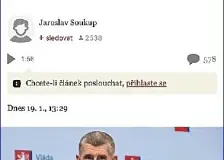 Taková ostuda17:58 Taková ostuda. A víte proč? Protože Babiš doufá, že si bude moct udělat selfie s králem Ubu v Mar-a-Lago. Král Ubu, středoevropský šašek a dvě figuríny v pravidelné péči plastické chirurgie. Proto se nemůže postavit za evropské spojence, ačkoliv Česko žádné jiné nemá. Tohle je ten “proevropský kurz”, kterým se tolik naivů chlácholilo v domnění, že Babiš z něj přece neuhne. On ale žádný kurz nedrž… Kreml oznámil, že Putin byl pozván, aby se připojil k Trumpově „mírové radě“ pro Gazu17:27 Putin nejeví žádné známky ukončení války na Ukrajině a toto tvrzení posiluje obvinění, že Trump upřednostňuje ruského prezidentaKreml oznámil, že Vladimir Putin byl pozván, aby se připojil k Donaldovu Trumpovi v „mírové radě“, která byla zřízena minulý týden s úmyslem dohlížet na příměří v Gaze.Mluvčí Kremlu Dmitrij Peskov v pondělí novinářům sdělil, že Rusko se snaží „vyjasnit všechny nuance“ na… Trump na otázku, zda by použil sílu k zabrání Grónska, odpověděl „bez komentáře“17:27 Trump doporučil, že Evropa by se měla soustředit na Rusko a UkrajinuV krátkém telefonickém rozhovoru s NBC News americký prezident Donald Trump odmítl odpovědět na otázku, zda by vyloučil zabrání Grónska silou.„Bez komentáře,“ řekl televizní stanici.Samostatně také zopakoval svou frustraci z Norska ohledně Nobelovy ceny míru a řekl, že „Norsko ji zcela ovládá, navzdory tomu, co říkají“.„Rádi říkají, že s tím nemají nic společného, ale mají s tím společného všechno,“ dodal.Trump také vyjádřil sv… Trump vztekle reagoval na vstřícný dopis od norského a finského premiéra17:27 Norský deník VG píše, že viděl původní zprávu zaslanou norským premiérem Jonasem Gahr Støre a finským prezidentem Alexandrem Stubbem, která zřejmě vedla Trumpa k tomu, aby odpověděl svým výbušným dopisem o Nobelovi a Grónsku.Zpráva, zaslaná formou textové zprávy, zní: „Vážený pane prezidente, vážený Donalde – ohledně kontaktů přes Atlantik – ohledně Grónska, Gazy, Ukrajiny – a Vašeho včerejšího o… Trump: Už nemyslím čistě na mír, protože jste mi nedali Nobelovu cenu13:42 Trump writes letter to Norway PM, says he no longer has "obligation to think of Peace" because Norway did not give him the Nobel Peace Prize. pic.twitter.com/rHXzkdQNO8— South Asia Index (@SouthAsiaIndex) January 19, 2026 BREAKING: Trump admits in a jaw-dropping letter to Norway’s Prime Minister that he's threatening to seize Greenland because he's upset that he didn't win the Nobel Peace Prize.W… „Drzý“ politický vliv bohatých odhalen: bohatství miliardářů dosáhlo 18,3 bilionu dolarů, konstatuje Oxfam8:52 Vlády se rozhodly pro oligarchii a brutálně potlačují protesty proti úsporným opatřením a nedostatku pracovních míst, uvádí zpráva charitativní organizace.Svět byl v loňském roce svědkem rekordního počtu nově vzniklých miliardářů, jejichž celkové bohatství dosáhlo 18,3 bilionu dolarů, zatímco globální úsilí v boji proti chudobě a hladu uvízlo na mrtvém bodě.Výroční průzkum globální nerovnosti organizace Oxfam odhalil, že počet miliardářů v roce 2025 poprvé překročil 3 000. Od roku 2020 jejich s… Milion chvilek pro demokracii: Babišova nedůvěryhodná vláda získala důvěru1:26 Foto: Tito lidé nezmizeli Milí a vzácní přátelé, Babišova nedůvěryhodná vláda získala důvěru a teď nám bude vládnout. Svět nekončí. A nekončí ani demokracie v České republice, byť je některými skutečnostmi ohrožena a poškozována. Ministr obrany nemůže říct, že je Rusko agresor, aniž by mu zalepili pusu. Ministr zemědělství v minulosti vyplácel miliardové dotace pro Agrofert a ještě nedávno stál v… Pokud bude Česko tolerovat své hloupě zbabělé politiky, skončí jako evropský pária0:54 Hloupost ve vnitřní politice nás bude stát “pouze” prosperitu. Třeskutá hloupost v té zahraniční nás bude stát evropské partnerství, tedy bezpečnost a tedy demokracii. Na sjezdu ODS vystoupil senátor Jirsa a požadoval, aby účastníci poslali zdravici Trumpovi s poděkováním za jeho mírové úsilí na celém světě a úspěchy v zahraniční politice. Ve světle událostí by u běžného člověka bylo na místě zep… Potřebuje Evropa sjednocenou armádu?0:54 Češi na chvostu (Albín Sybera)Oni si snad Češi opravdu myslí, že nejsou přímo existenčně ohroženi?!? Cvokhaus. EU zvažuje odvetná opatření proti Trumpovu „vydírání“ v podobě cel ohledně Grónska0:54 Emmanuel Macron vyzývá ostatní vedoucí evropské politiky, aby v případě, že USA zavedou cla, použili silný nástroj proti nátlakuEU zvažovala odvetná cla na americké zboží a dokonce i nejzávažnější ekonomické sankce proti USA, zatímco evropští lídři kritizovali hrozbu Donalda Trumpa uvalit nová cla na dovoz z osmi zemí, které se staví proti jeho pokusu o anexi Grónska – což jeden ministr označil za „vydírání“.„ Hrozby zavedením cel narušují transatlantické vztahy a představují riziko nebezpečné … pivotalCanvas0:54 Obrázek pro tento den: Videoprezentace Linefall ZDE, ZDE a ZDE) Chcete koupit autorce těchto obrázků kávu? Pokud ano, klikněte ZDE Írán varuje, že útok na Chameneího by byl vyhlášením války0:54 Prezident vydává varování uprostřed spekulací, že Donald Trump plánuje zavraždit nebo sesadit íránského nejvyššího vůdceÍránský prezident Masoud Pezeškian v neděli varoval, že jakýkoli útok na nejvyššího vůdce země, ajatolláha Alího Chameneího, by byl vyhlášením války.V zjevné reakci na spekulace, že Donald Trump zvažuje pokus o atentát nebo odstranění Chameneího, Pezeškian v příspěvku na X uvedl… Channel 4 Ne