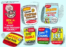 Trump's tariffs are toast—but the chaos continues2:03 The Supreme Court improved everyone’s Friday morning—well, everyone except Donald Trump —by dropping the long-awaited decision on tariffs and kneecapping the president’s signature economic policy. The ruling is a sprawling mess, but not nearly as big a mess as the tariffs’ aftermath. Part of why the case is a mess is that not all six justices who ruled to throw out the tariffs agreed on the same … The Recap: The trail of damage behind Trump’s tariffs, and ballroom committee glazes Dear Leader2:03 A daily roundup of the best stories and cartoons by Daily Kos staff and contributors to keep you in the know. Democrats don’t want you to forget the cost of Trump’s dumb tariffs Trump’s tariffs may be gone—but they left behind major damage. ‘Deeply concerned’: Democrats launch probe of Musk’s sex abuse bot Extremely “2026” headline. Trump twerp demands federal prosecutors bend the knee to Dear Le… Cartoon: FCC guide2:03 A cartoon by Brian McFadden. Support my Patreon for early access and exclusives. Follow me on Mastodon , Bluesky , or at my website . Related | CBS forces Colbert to pull segment—and he isn't doing it quietly Teamsters supported Trump—now it's backfiring spectacularly1:30 Remember Teamsters President Sean O’Brien’s love affair with President Donald Trump? Well, it’s now spectacularly backfiring. In January 2024, O’Brien met privately with then-candidate Trump. Months later, he spoke at the Republican National Convention, complaining about backlash from “the left” and praising Trump as “one tough SOB.” “I travel all across this country and meet with my members ever… FCC chair's 'patriotic' nonsense is straight out of North Korea0:57 Federal Communications Commission Chair Brendan Carr, low-key one of the worst people in the Trump administration, has a pledge for all you patriot broadcasters as we approach America’s 250th birthday. It’s voluntary— wink, wink! The pledge features the usual burbling about how great it is that our glorious leader, President Donald Trump, is marching us to the semiquincentennial, which will occur… Supreme Court’s tariff ruling may have broken Trump23:49 President Donald Trump held a press conference Friday following a Supreme Court ruling striking down his use of emergency powers to impose tariffs around the world. Trump drifted through what appeared to be a hastily cobbled together statement denouncing the Supreme Court and other loose thoughts—which seems to be his signature approach to his second term. "Tariffs have likewise been used to end … Trump's tariff loss is bad for 'future President' AOC, says Rand Paul22:41 Republican Sen. Rand Paul of Kentucky argued on Friday that the Supreme Court’s decision to rebuke President Donald Trump on tariffs was really a huge loss for “future President” Alexandria Ocasio-Cortez’s purported plan to make America socialist. And Fox News agreed with him. The Supreme Court ruled 6-3 that Trump’s sweeping tariffs, which have weighed on the economy, are illegal. Instead, the c… Lara Trump touts ‘most transparent president’ as he kicks out press21:32 Fox News viewers were given a crash course in what “transparency” looks like in the Trump administration on Friday. Taking time away from deluding herself into believing she earned her status in government on merit, Lara Trump appeared on the network to declare that her father-in-law is the most transparent president ever. “When the American people wanted more information on the MLK files, on JFK… Cartoon: ... or else21:32 Lackey-packed committee approves Trump's hideous ballroom20:57 President Donald Trump's ridiculous , corrupt , and possibly illegal $400 million ballroom project got approval from one of two necessary committees on Thursday, when an advisory panel Trump stacked with a bunch of unqualified yesmen concluded their so-called review process and gave a final okay for the plans. Trump appointed all seven of the members of the Commission of Fine Arts, which approved… Border czar happy to stab Kristi Noem in the back20:57 The power struggle within President Donald Trump’s immigration regime seems to be heating up. Border czar Tom Homan appeared on CNN Friday morning, where host Sara Sidner asked him to defend Homeland Security Secretary Kristi Noem’s outrageous description of Alex Pretti, who was shot and killed by immigration agents in Minneapolis, as a “domestic terrorist.” “We all watched the video,” Sidner sai… ‘Deeply concerned’: Democrats launch probe of Musk’s sex abuse bot19:47 Democrats on the House Energy and Commerce Committee have launched an investigation into conservative billionaire Elon Musk and his company’s creation and distribution of nonconsensual sexualized imagery—which includes images of children. Reps. Frank Pallone (NJ), Jan Schakowsky (IL) and Yvette Clark (NY) sent a letter on Thursday to Musk, who operates as the CEO of xAI, the parent company of X a… |