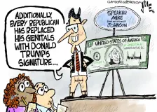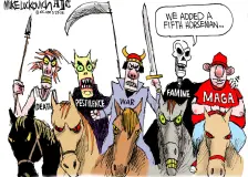 Fox News blames rowdy teens on the Democratic Party23:19 Teenagers are doing stupid things on spring break, and Fox News wants its audience to blame the Democratic Party. Specifically, Fox hosts are saying mayhem from rowdy teens is the fault of former President Barack Obama and former Vice President Kamala Harris. Somehow. On Wednesday’s edition of “Outnumbered,” the conservative network’s panel show formulated as a knockoff of “The View,” host Harris… Fox News celebrates ... diversity?23:19 NASA’s Artemis II lunar mission is set to launch Wednesday, and suddenly, the dopes over at Fox News are dialing back their usual anti-DEI racism to celebrate the crew’s diversity. “Among the crew are the first woman, first person of color, and first Canadian on a lunar mission,” a Fox host gushed. “So there's a lot of firsts happening here, and all four astronauts will represent the best of huma… Alex Jones calls to dump Trump over busted brain and body22:16 Conspiracy theorist Alex Jones told the viewers of his Tuesday broadcast that it is time to drop President Donald Trump as a leader of the conservative movement, citing failing health and mental decline. YouTube Video Jones said recent images showing Trump’s swollen ankles were evidence of “heart failure” and that “he does look sick.” “He does babble and sound like the brain’s not doing too hot,”… Jeanine Pirro demands ‘retribution’ against children21:44 U.S. Attorney Jeanine Pirro is struggling —one might say she can’t even get a jury to indict a ham sandwich . However, she has a plan, and that plan is to complain to Fox News about how the law supposedly limits her ability to prosecute children . “The mentality in D.C. is that, you know, if you're less than 18 years of age, unless you kill somebody or do something really serious, it goes to the … Boots on the ground21:44 A cartoon by Clay Bennett. Related | Top Republican's rationale for Iran war will make your head spin Hegseth cool with Army helicopter stunt at Kid Rock's house20:40 Imagine risking your Army career for a washed-up hack like Kid Rock. Because that’s apparently what two Apache helicopter crews decided was a terrific idea, and then they got suspended — Wait a minute. We’re getting word that in the middle of a war, at a time when we are ostensibly engaged in high-stakes negotiations with Iran to bring things to a close, Defense Secretary Pete Hegseth made time t… They protested at No Kings. Now they’re running for office.20:08 “Oftentimes, you’re the person you’re looking for,” said Leila Staton, an Iowa state House candidate. By Amanda Becker for The 19th Kendra Sullivan was at her family’s cabin in the Allegheny Highlands region in late October “just planning on having a low-key country weekend.” But the cabin has internet, so messages kept coming in about her one-woman No Kings demonstration the prior weekend in Bec… Republican touts 'amazing' Iran war, despite dead troops and global chaos19:36 Republican Rep. Tom Emmer of Minnesota heaped praise on President Donald Trump’s war in Iran—you know, despite the dead American soldiers and all that. “This has been an incredibly successful mission in spite of the tragedy of losing 13 of our service men and women,” Emmer effused during a Wednesday interview on CNBC. “This is an amazing, amazing mission—and guess what, if you watch the news in t… Trump’s hunt for undocumented Medicaid enrollees yields few violators19:04 By Phil Galewitz for KFF Last August, as part of the federal government’s crackdown on people in the country illegally, the Trump administration sent states the names of hundreds of thousands of Medicaid enrollees with orders to determine whether they were ineligible based on immigration status. But seven months later, findings from five states shared with KFF Health News show that the reviews ha… Trump floats quitting NATO after it won’t endorse his warmongering18:00 President Donald Trump is once again floating the idea of the United States abandoning the long-standing NATO alliance, this time because several U.S. allies have refused to aid his war against Iran. In an interview with The Telegraph published on Wednesday, Trump was asked if he would reconsider American membership in the alliance, and he responded, “Oh yes, I would say [it’s] beyond reconsidera… Stopgap measures aren't enough to halt rising gas prices as the world scrambles for more oil17:28 Global leaders have been scrambling to contain the rising cost of oil and gasoline since the start of the Iran war, which took a record amount of oil off the market when tankers full of crude were stranded in the Persian Gulf and military strikes damaged refineries, pipelines and export terminals. Hoping to ease some pain for consumers, President Donald Trump and other heads of state have been pu… |