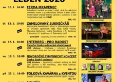K mosteckému jezeru se sjedou otužilci18:32 Už v sobotu 17. ledna se Mostecké jezero znovu promění v místo, kde se potkají ti nejodolnější z celé republiky. Koná se totiž 4. ročník setkání otužilců, které je zároveň součástí Českého poháru v zimním plavání. Pořadatelem je město Most ve spolupráci s Plaveckým klubem Otužilci Most. Do ledové vody se ponoří zhruba 150 otužilců […] V Krušných horách se lyžuje18:32 V lyžařských areálech v Ústeckém kraji se tento víkend lyžuje. Zpravodajství o podmínkách pro lyžaře připravuje Ústecký kraj. Výstava obrazů Veroniky Jiránkové3.ledna Vernisáž se bude konat ve středu 14.01.2026 od 18 hod. v aule Scholy Humanitas. Výstava je prodejní a potrvá do 14.02.2026. Dnes otevřeno na hvězdárně!3.ledna Hvězdárna a Planetárium Most na Hrad Hněvín je dnes pro veřejnost otevřena od 13:00 do 20:00 hodin. Pokud vydrží jasná obloha, čeká na návštěvníky do cca 15:30 pozorování Slunce a jeho skvrn. Po soumraku se pak návštěvníci společně podívají na taje noční oblohy. Pokud přijdete k zavřeným dveřím hvězdárny, mějte prosím trpělivost a pochopení. Do […] Finanční správa pomůže Litvínovským s daňovým přiznáním3.ledna Finanční správa i v roce 2026 vyjede do Litvínova pomáhat s daňovým přiznáním Konzultační telefonní linka 953 131 660 Závody psích spřežení2.ledna Na Klínovci startuje lyžování2.ledna V sobotu 3.1. se otevřou všechny tři lyžařsky propojené části areálu – sever, jih i Neklid. Nově se v ten den k Dámské, Pařezovce a Lázeňské přidají Přemostěná a Moser a to včetně propojovacích lyžařských cest. Do provozu bude uvedeno všech 5 lanovek. Do této chvíle napadlo i kolem 20 cm přírodního sněhu, takže si užijete […] Vyjeďte si na běžky2.ledna Od 1. ledna se v mostecké nemocnici nebude rodit1.ledna Od 1. do do 6. ledna nebude porodnice v Mostě přijímat maminky k porodu. Pokud se váš termín blíží, počítejte s využitím okolních porodnic v rámci Krajské zdravotní. Porodnice bude opět přijímat od úterý 6. ledna od 12 hodin. Během rekonstrukce se přesouvají porodní sály do náhradních, moderně připravených prostor v budova B, 8. patro […] |