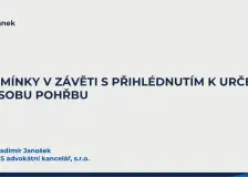 Podmínky v závěti s přihlédnutím k určení způsobu pohřbu „Nový“ občanský zákoník umožňuje, na rozdíl od předchozí právní úpravy, aby zůstavitel k závěti připojil nějakou formu podmínky coby tzv. vedlejší doložky. Stávající úprava tak klade větší důraz na autonomii vůle zůstavitele, a to dokonce tak, že zhojuje neplatná ujednání o podmínkách v závětech pořízených do 31. 12. 2013 (§ 3070 o. z.). Z praxe je pak možné zmínit závěry rozsudku Krajského soudu… |