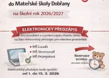 Záměr výpůjčky pozemků za účelem předzahrádky16.února Město Dobřany zveřejňuje podle ustanovení § 39 odst. 1 zák. č. 128/2000 Sb., o obcích, ve znění pozdějších předpisů, záměr výpůjčky pozemků parc. č. 3250/2, o výměře 556 m 2 , ostatní plocha, jiná plocha a parc. č. 3263/5, o výměře 296 m 2 , orná půda, vše v obci a k. ú. Dobřany, za účelem zkrášlení veřejného prostoru jeho osázením zelení, a to vlastníkům sousedního domu č.p. 532, Dobřánky, Dobřany. Příloha: Situační mapka ke stažení zde Situační mapka Typ: PDF dokument, Velikost: 157.74 kB Bli… Klub cestovatelů Dobřany Tenisová hala16.února Guatemala s Martinem Strakou 11. 12. 2025 Vietnam s Evou Naslerovou 15. 1. 2026 Havaj, Kanada, Yellowstone 12. 2. 2026 s Lukášem Veseckým Bolívie 12/3 2026 se Zdeňkem Baxou Výstava Bohumil Brada, voják, technik, světoběžník Dobřanská galerie Dobřany14.února Životní osudy dobřanského rodáka ve fotografiích a dokumentech. Vernisáž výstavy 4. března 2026 v 16:30 hodin. Upozornění na možný výskyt Aujeszkyho choroby na Dobřansku13.února Vážení občané, dovoluji si Vás informovat o možném výskytu Aujeszkyho choroby (pseudovztekliny). Jedná se o virové onemocnění, které postihuje zejména divoká prasata (jako přirozené hostitele a přenašeče). Na člověka je nepřenosná, ale je vždy smrtelná pro ostatní savce (skot, ovce, psy...). Zápis dětí do Mateřské školy Dobřany pro školní rok 2026/202713.února Elektronický předzápis bude spuštěn od 1. do 15. 3. 2026. Řádný zápis proběhne ve dnech 23. - 25. 3. 2026. |