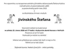 Slavnostní vyhlášení ankety Sportovci města Hořice 2025: Výsledky, živý přenos9:11 Ve čtvrtek 19. února proběhlo v prostorách Biografu Na Špici slavnostní vyhlášení 23. ročníku ankety Sportovci města Hořice. Oceněno bylo celkem 44 sportovců! Kdo si nakonec odnesl vítězství? Sport9:11 Ocenění Jivínský Štefan19.února Ve středu 25. února 2026 od 17 hodin se v Kulturním domě Koruna v Hořicích uskuteční slavnostní setkání spojené s udílením Jivínského Štefana. Články - rubriky19.února Rozpočtová opatření19.února Před 250 lety se narodil Josef Ladislav Jandera18.února Rok 2026 bude v Hořicích ve znamení významného výročí jednoho z nejvýznamnějších hořických rodáků – Josefa Ladislava Jandery. Tento přední matematik, profesor a pozdější děkan i rektor Univerzity Karlovy, který působil půl století na pražské univerzitě, nikdy nezapomněl na své rodné město a stal se jeho významným mecenášem. Jivínský Štefan18.února Město Hořice, jakožto letošní pořadatelské město, srdečně zve na slavnostní udílení ocenění Jivínský Štefan, které je již po osmadvacáté udělováno jako připomínka na významného jičínského rodáka Josefa Štefana Kubína. Cena je určena za pozoruhodný počin roku 2025 a za dlouholetou činnost v oblasti kultury. Den otevřených dveří MŠ Na Daliborce18.února Mateřská škola Na Daliborce zve rodiče i děti na Den otevřených dveří, který se uskuteční 25. února 2026 od 16:00 do 18:00 hodin. Návštěvníci si mohou prohlédnout třídy i zahradu, setkat se s učitelkami a užít si tvořivé aktivity pro děti. Zámecký Halloween 202518.února 202618.února 202518.února Karneval na ledě18.února TRUBÍK na Kluzišti18.února Převedené Galerie - WEBHOUSE18.února Talkshow v Lukavci18.února Další díl talkshow v Lukavci. Předprodej vstupenek ve vinotéce Hořice nebo v restauraci Lucerna v Lukavci. |