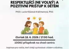 Setkání s umělcem - výstava Mikuláš Karban: Velká výprava10:49 Výstavu MIKULÁŠ KARBAN: VELKÁ VÝPRAVA v Městském muzeu v Hořicích doplní komentovaná prohlídka s autorem a kurz kreslení dinosaurů. Vyberte si termín a přijďte zažít výstavu v živém kontaktu. Kapela The Atavists natočila nový klip v lesích u Hořic10:49 Česká rocková kapela The Atavists vydala nové EP Hit So Hard. Součástí vydání je i stejnojmenný videoklip, který se natáčel v zasněžených hořických lesích. Jak vychovávat děti s respektem9:45 Přednáška „Jak vychovávat děti s respektem“ se uskuteční 18. června 2026 od 17:00 v RC Konvička. Zaměří se na respektující a pozitivní přístup k dětem v každodenní výchově. Jak zvládat výchovu bez partnera (a mluvit s dítětem o nepřítomném rodiči)9:45 Přednáška „Jak zvládat výchovu bez partnera (a mluvit s dítětem o nepřítomném rodiči)“ se uskuteční 9. června 2026 od 17:00 v RC Konvička. Určena je především rodičům vychovávajícím děti samostatně. Připravenost dětí do školy z logopedického hlediska9:45 Přednáška „Připravenost dětí do školy z logopedického hlediska“ se uskuteční 22. dubna 2026 od 17:00 v RC Konvička. Určena je rodičům předškolních dětí i dalším zájemcům. Když se rodí děti, rodí se i rodiče9:45 Workshop „Když se rodí děti, rodí se i rodiče“ zaměřený na citovou vazbu (attachment) se uskuteční 1. dubna 2026 od 17:00 v RC Konvička. Určen je především rodičům a nastávajícím rodičům. Jarní swap v Konvičce9:45 Jarní swap v Konvičce se uskuteční v sobotu 28. března 2026 od 9:00 do 11:00 hodin. Přijďte vyměnit oblečení, hračky či drobnosti do domácnosti a odnést si nové poklady bez použití peněz. Velikonoce očima dětí16:47 Městské muzeum Hořice zve návštěvníky na výstavu Velikonoce očima dětí, která představí velikonoční dekorace vytvořené dětmi ze škol a školek z Hořic. Den otevřených dveří: Dětská skupina Timík12.března Seznámíte se s naší prací, aktivitami, kterým se ve skupince aktivně věnujeme. Přednáškou na téma: podpora nevšeobecného rozvoje dětí příprava na vstup do MŠ od Mgr. Hany Janoškové z PPP Jičín Den otevřených dveří: Denní stacionář Sekvoj12.března Přijďte si prohlédnout prostory Denního stacionáře Sekvoj, zjistit více o našich službách a poznat, jak probíhá každodenní péče o naše klienty. Křest zpěvníku Lenky Klapilové: Jdu do školy12.března Přijďte si s námi připít na vydání zpěvníku nejen pro předškoláky Jdu do školy od hořické autorky Lenky Klapilové. Součástí večera ve foyer biografu Na Špici bude i dětské vystoupení s písničkami a básničkami ze zpěvníku. Na místě bude možné zpěvník zakoupit. |