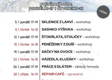 Vlněný kroužek0:35 Vlněný ateliér otevírá kroužek pro všechny mladé lidi, kteří mají zájem naučit se různé textilní techniky jako háčkování, filcování, šití a tkaní. Během celého školního roku se účastníci mohou těšit na rozmanité projekty, které je provedou světem kreativního tvoření z přírodních materiálů. Veřejná vyhláška, Oznámení o možnosti převzít písemnost, S. A. Pietrasiak, Polsko0:35 VV Oznámení o možnosti převzít písemnost S. A. Pietrasiak.pdf Typ: PDF dokument, Velikost: 623.78 kB Čtenářský klub0:35 Čtenářský klub nabízí jedinečnou příležitost k vzájemné inspiraci a sdílení myšlenek o knihách. Přineste si své oblíbené tituly a pojďte s námi diskutovat o jejich obsahu a významu. Večerní kresba0:35 Každé úterý se můžete zúčastnit večerní kresby, která se koná od 18:00 do 20:00 v Bastionu IV,. Přijďte si užít kreativní čas a vyměnit si zkušenosti s ostatními účastníky. Záměr prodeje č. 3/202623.ledna VÝZVA K PODÁNÍ ŽÁDOSTI NA POSKYTNUTÍ DOTACE Z ROZPOČTU MĚSTA JAROMĚŘE NA ROK 202623.ledna VÝZVA K PODÁNÍ ŽÁDOSTI NA POSKYTNUTÍ DOTACE Z ROZPOČTU MĚSTA JAROMĚŘE NA ROK 2026 na účel stanovený zvláštním právním předpisem dotace poskytovatelům sociálních služeb na účel vymezený zákonem č. 108/2006 Sb., o sociálních službách, v platném znění VÝZVA 2026.pdf Typ: PDF dokument, Velikost: 374.69 kB SOKOLOVNA OTEVŘENÁ DĚTEM23.ledna Otevřená sokolovna pro děti nabízí možnost vyzkoušet si různé aktivity jako opičí dráhu, jemnou motoriku, fotbal a florbal. Akce je určena pro mladé lidi do cca 8 let a přítomnost rodičů je podmínkou. Vstupné činí 70 Kč za dítě a doporučujeme si vzít s sebou hrnek na kávu nebo čaj. Závod rohaček - memoriál Josefa Tylša23.ledna Historický závod rohaček je již tradiční a diváky i soutěžícími oblíbenou akcí, která se odehraje v maloúpském skiareálu U Kostela. Bejlí Band23.ledna Na koncertě Bejlí Band uslyšíte zaměstnance Domova Svatého Josefa. Mezi účinkujícími budou Jan Lonc, Marcela Koutníková, Martin Holický a hostující Eva Kočnarová. Těšíme se na vaši účast. Pirátský karneval v Hostinném23.ledna Karneval pro dospělé a mladé lidi se uskuteční v Národním domě Hostinné. Na programu jsou soutěže o poklady, diskotéka a společný pirátský tanec. K dispozici bude také pirátská dráha s hrami a zajištěné občerstvení. |
