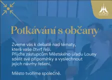 První letošní Potkávání s občany10:16 Zveme vás letos k první debatě nad tématy, která vaše čtvrť řeší. Setkání se bude konat ve čtvrtek 23. 4. 2026 od 16 hod na Suzdalském náměstí (v prostoru u večerky). V pondělí 20. dubna spustí Louny na sídlišti Kpt. Nálepky testovací provoz třídění a svozu bioodpadu14.dubna Cílem projektu testovacího provozu sběru bioodpadu je snížit množství směsného komunálního odpadu a usnadnit obyvatelům třídění biologicky rozložitelného odpadu. Analýza obsahu komunálního odpadu totiž ukazuje, že v Lounech lze ještě asi 60% odpadu dále vytřídit a bioodpad tvoří téměř 16% z objemu komunálního odpadu. Mapa s umístěním nádob na sběr bioodpadu na sídlišti Kpt. Nálepky14.dubna Mapa s umístěním nádob na sběr bioodpadu. Sběr bioodpadu na sídlišti Kpt. Nálepky probíhá v testovacím provozu od 20. dubna 2026. Studenti nemyslí jen na sebe13.dubna V březnu se na Obchodní akademii a Střední odborné škole generála Františka Fajtla v Lounech uskutečnilo školní fórum. Tentokrát se do diskuse zapojili středoškoláci napříč ročníky i studijními obory, což se ukázala i pestrá škála návrhů i postřehů. 202625.března |