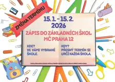 Pravidelná brožura „Základní školy v Praze 12 – Přijďte se podívat!“11:25 Vážení rodiče a zákonní zástupci, upozorňujeme na změnu termínů zápisu do základních škol pro školní rok 2026-2027. Změna souvisí s poslední novelou školského zákona. Na Berounce začne od soboty řízené bourání ledu – nevstupujte na led10:21 Povodí Vltavy, s. p. informuje občany, že vzhledem k vývoji meteorologické situace začnou od soboty 10. ledna do odvolání bourat ledovou celinu na řece Berounce. U pravého břehu bude vytvořen koridor k snadnějšímu odplouvání ledových ker při následném odtávání. Jedná se o práce lodní technikou (1x tlačný remorkér a 1x plovoucí bagr) v rozsahu přístav Radotín, Berounka říční kilometr 0,1 – 1,0. Po… Inzerce v Novinách Prahy 128.ledna Vyrozumění o zahájení řízení - změna stavby, jednání: Přístavba a nástavba ZŠ a MŠ Na Beránku8.ledna Kvízove večery8.ledna Modřanské strojírny8.ledna |