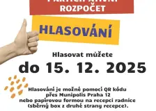 TEST16:30 Přestupky16:30 Úřední deska16:30 Dvanáctka se připojila k podpoře Tibetu15:53 Před radnicí Prahy 12 zavlála v úterý 10. března opět tibetská vlajka. Připomíná výročí protičínského povstání z roku 1959, při němž zahynulo nejméně 80 tisíc tamních obyvatel. Cílem kampaně Vlajka pro Tibet, do níž se každoročně zapojují mnohé úřady, školy a další instituce, je upozornit na dlouhodobé porušování lidských práv v této oblasti. Startuje sběr návrhů do participativního rozpočtu13:29 Do neděle 10. května 2026 můžete přihlašovat své návrhy do letošní výzvy participativního rozpočtu. Znění výzvy, pravidla i formuláře (online i pro podání fyzicky) naleznete na webu městské části: 2026 - 7. výzva participativního rozpočtu nebo pomocí QR kódu na plakátu. Různé11:45 |
